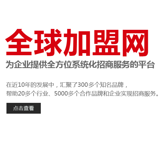 平臺盡顯優(yōu)勢,數(shù)據(jù)決定實力?!凹用司蜕蟡iameng.com”已成為越來越多的企業(yè)、品牌和投資人的共識,全球加盟網(wǎng)已成為業(yè)內(nèi)效果好、性價比高的招商加盟推廣平臺。